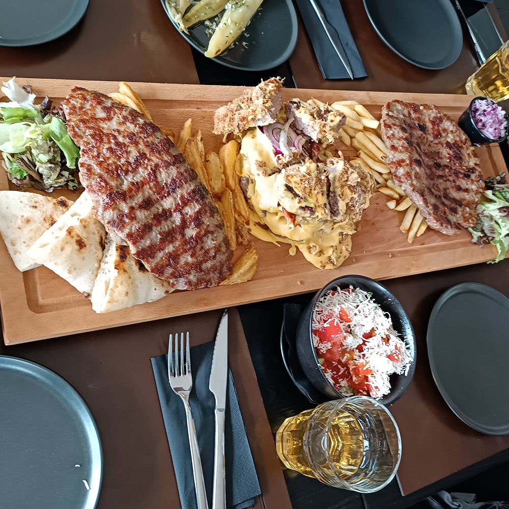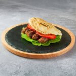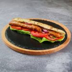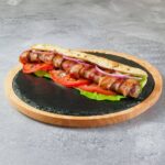 Šiš ćevap od 100% junećeg mesa, nafilovan sa kačkavaljem i šunkom u domaćem somunu