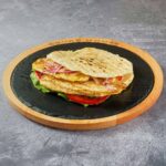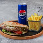 2 x 150g čistog junećeg mesa, topi sir, panceta, iceberg, paradajz, kiseli krastvčići, ljubičasti luk, burger sos