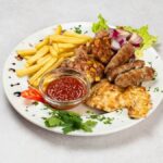 3 Δevapa, 2 mesna uΕ‘tipka, raΕΎnjiΔ, svinjski kotlet, prΕΎeni krumpiriΔi, lepinja, ketchup *slika je simboliΔna