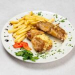 ZagrebaΔki odrezak od piletine punjen Ε‘unkom i sirom, pommes frites, tartar, limun, kruh nije ukljuΔen u cijenu *slika je simboliΔna