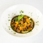 MijeΕ‘ano meso junetine i svinjetine, krumpir, mrkva, bijelo vino, zaΔini, koncentrat od rajΔice, luk, kruh nije ukljuΔen u cijenu *slika je simboliΔna