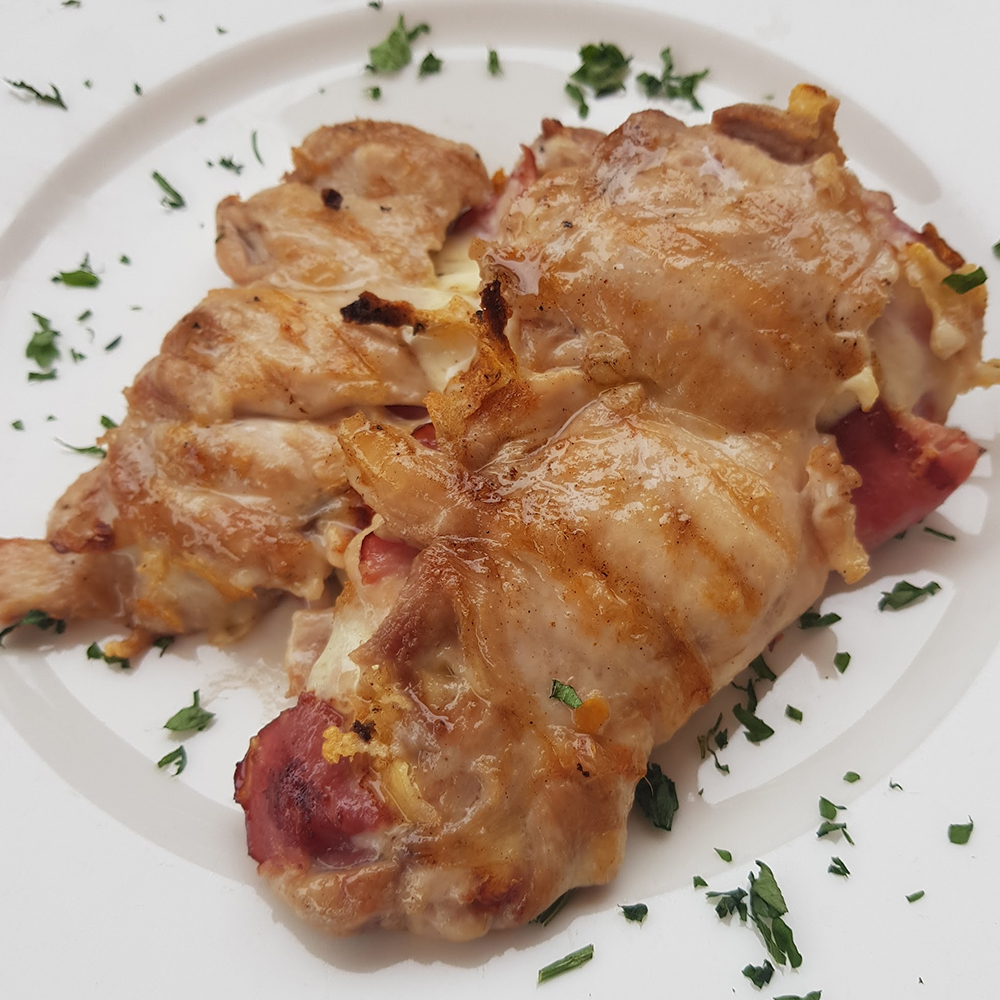 Punjeni pileΔi batak i zabatak sa sirom i dimljenom Ε‘unkom 300g, prΕΎeni krumpiriΔi *slika je simboliΔna