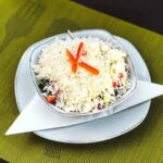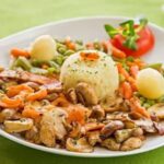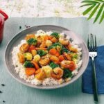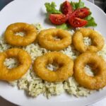 Riblji štapići sa rižom, povrćem i šampinjonima