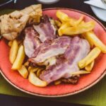 2 male porcije Le Coq file, omlet sa šunkom, kobasice, pečena slanina, pomfrit *Slika je simbolična