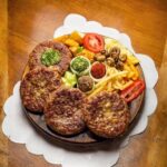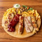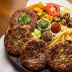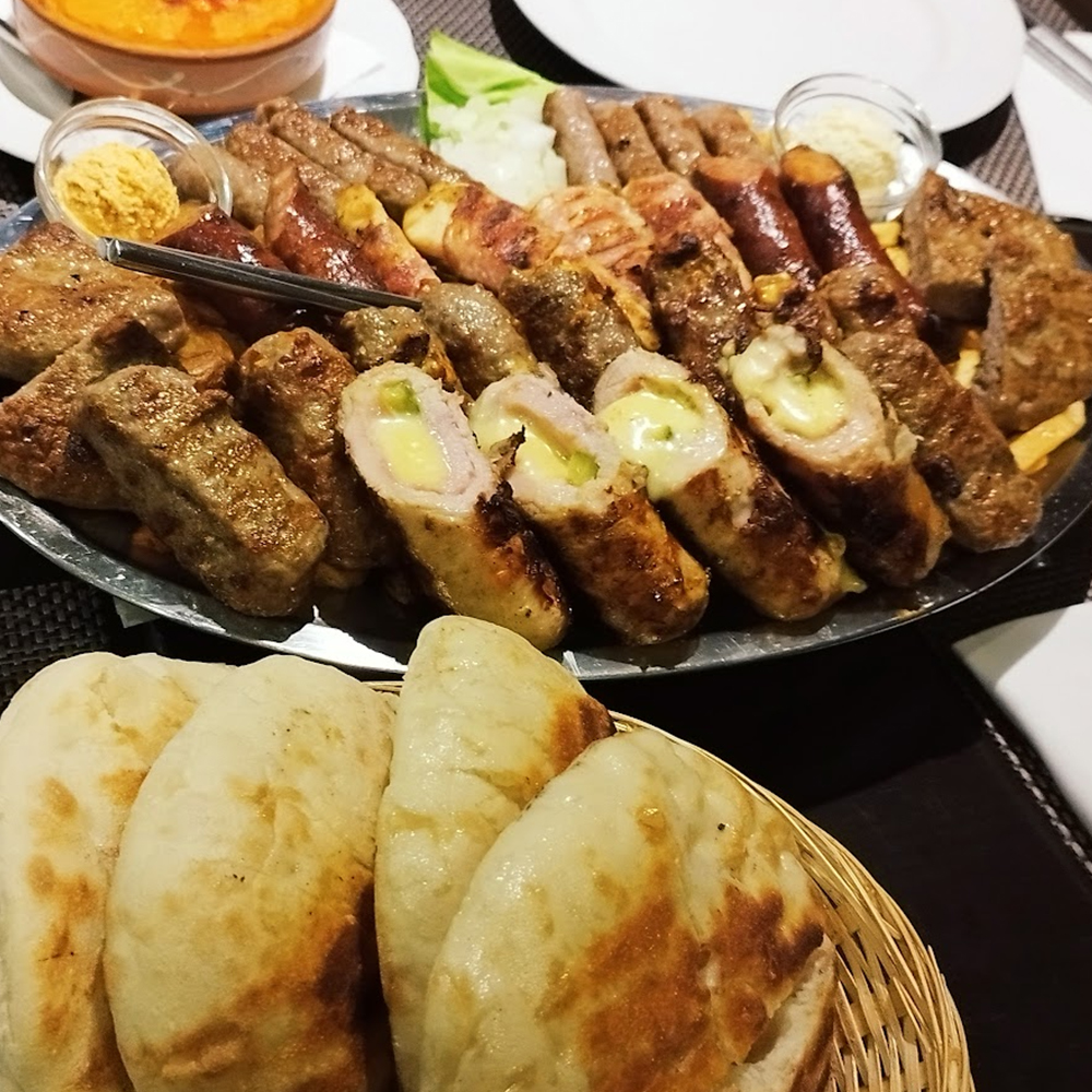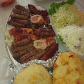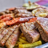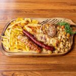 1x pljeskavica s lukom, 1x pljeskavica sa sirom, 1x gurmanska pljeskavica, 1x đevrek, pomfrit, mladi pečeni krumpir, šampinjoni na žaru, zapečeni grah