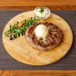 Začinjeno mljeveno juneće meso sa špekom, sirom i ljutom paprikom u obliku vijenca s kajmakom (350g)